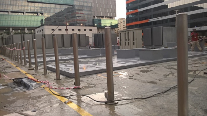 E Safe Controls Inc Installed External Padlocking Removable Bollards in Intel Technologies, outer ring road Bengaluru. These removable type bollards are made of 316 grade SS material, base pipe two and half feet in depth and its top removable type pipe sits inside the Two and half feet deep pipe and can be locked. Since these are removable type, you can give access to any machines or vehicles by opening lock and removing top pipe. the bollards are designed to suit the site conditions of – 2.5MW Fuel Cell System Project at intel campus, Bangalore. The purpose of installation of Bollards is to safeguard the costly equipment which are in open site condition, as vehicles runs on road next to these machines.